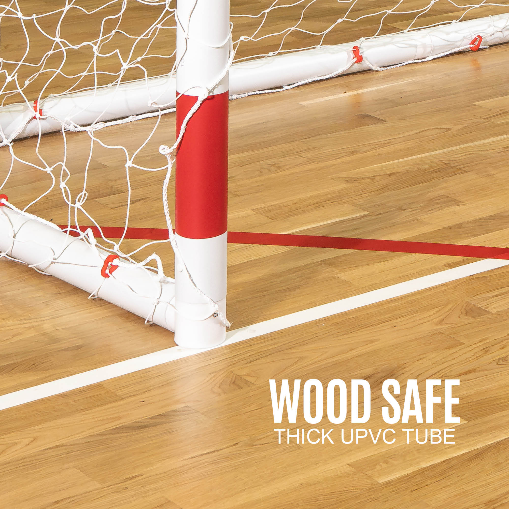 The 70mm uPVC frame and UV-stabilized net handle regular family play. Diagonal support tubes add stability, while the fold flat profile keeps storage areas clutter-free. Use ground anchors on grass for extra hold, or add sandbags over the base on hard surfaces. No carry bag is included, since the goal is designed to live folded flat against a wall.